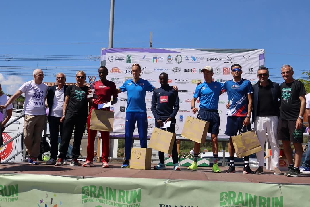 25 Maggio 2025Successi africani sulle strade di Porto Sant’Elpidio. La quarta edizione del Trofeo Podistica Moretti Corva rilancia la tradizione internazionale di una gara prestigiosa, ma è anche un evento che va oltre lo sport: la “Brain Run” per sostenere il progetto di ricerca contro la sclerosi laterale amiotrofica, fortemente voluto da Fausto Chioini. Al via oltre 300 podisti, con un totale di circa mille partecipanti e la vittoria del burundese Jean Marie Vianney Niyomukiza, portacolori della Libertas Unicusano Livorno, con il tempo di 30’10” sui 10 chilometri. Per il secondo posto c’è l’ascolano Stefano Massimi (Atl. Vomano) in 30’56” e un altro mezzofondista del Burundi si piazza terzo, Leonce Bukuru (Atl. Castello, 31’02”), mentre chiudono ai piedi del podio due abruzzesi: Lorenzo Dell’Orefice (Atl. Vomano), quarto con 31’13”, e Douglas Scarlato (Us Aterno Pescara, 32’29”). Tra gli atleti delle società marchigiane, ottavo Alessio Monti (Sef Stamura Ancona) in 33’28”. Nella gara femminile si impone la keniana Abigael Chelangat (Libertas Unicusano Livorno), compagna di club del vincitore maschile: 34’42” il tempo finale. Conquista il secondo posto la junior Valeria Carnevali (Sef Stamura Ancona) in 38’00” davanti a Greta Negro (Futuratletica Piemonte, 38’17”), quarta Marica Melatini (Atl. Avis Macerata, 38’50”) che precede Nausicaa Malaccari (Atl. Civitanova, 39’15”). Presenti tra gli altri il sindaco di Porto Sant’Elpidio, Massimiliano Ciarpella, e l’assessore comunale allo sport Enzo Farina, la dottoressa Michela Coccia del centro di ricerca Nemo di Ancona, il presidente FIDAL Marche, Fabio Romagnoli, e il celebre ex portiere della Nazionale, Stefano Tacconi.