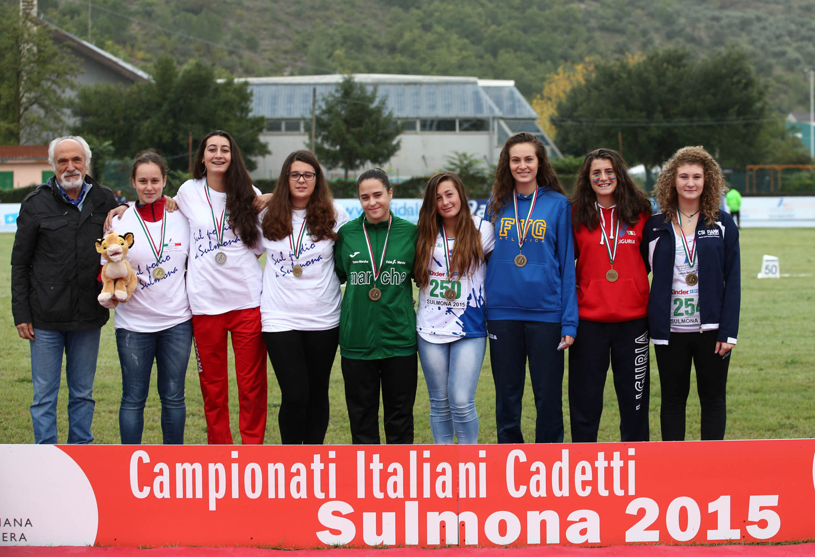 Buon risultato anche per la staffetta maschile: chiude settimo in 45”02 il quartetto formato da Marco Mancini (Collection Atl. Sambenedettese), già ottavo nel triplo, Matteo Bernocchi (Atl. Sangiorgese R. Rocchetti), Mattia Mecozzi (Sport Atl. Fermo) e Niccolò Giacomini (Sef Stamura Ancona), proprio nel giorno del suo 15° compleanno. Si esprime vicina al suo record personale Benedetta Trillini (Atl. Amatori Osimo): nona con 1.58 nel salto in alto la ragazza di Filottrano, allenata da Giuseppe Carbonari e figlia di una modella nigeriana. Nell’esathlon cadetti, la prova multipla composta da sei gare al debutto in questa edizione, tredicesimo Alessandro “Sasha” Caccini (Collection Atl. Sambenedettese) che ha origini ucraine ed è compagno di allenamento di Emma Silvestri. Tra gli altri, meritano di essere sottolineati i record personali di Teresa Grandoni (Atl. Sangiorgese R. Rocchetti), cresciuta sotto la guida di Guglielmo Colucci e quattordicesima nell’asta con 2.70, ma anche di Leonardo Burroni (Sef Stamura Ancona), 16° nel giavellotto con 41.94, ex calciatore che abita a pochi passi dal campo Conti del capoluogo dorico e ha come allenatore Marcello Salati, ma ottiene lo stesso piazzamento con 1.78 nell’alto il compagno di club Michele Pasquinelli, appassionato di moto e seguito da Riccardo Mariotti. Quattordicesime invece la siepista Micaela Melatini (Atl. Avis Macerata), allenata a Civitanova da Matteo Silenzi, e la martellista Melissa Amati (Atl. Sangiorgese R. Rocchetti), che si prepara con Alfio Petrelli e ha iniziato invogliata dall’amica marciatrice Ludovica Ruzzetta. Ad accompagnare la rappresentativa, per il Comitato regionale, il presidente Giuseppe Scorzoso e il fiduciario tecnico Mauro Ficerai, insieme ai tecnici Angelo Angeletti, Sandro Bernardi, Sergio Biagetti, Francesco Butteri, Robertais Del Moro, Elisa Del Moro e Roberto Recchioni, oltre ai tecnici sociali Guglielmo Colucci, Pino Gagliardi e Luca Vandi.