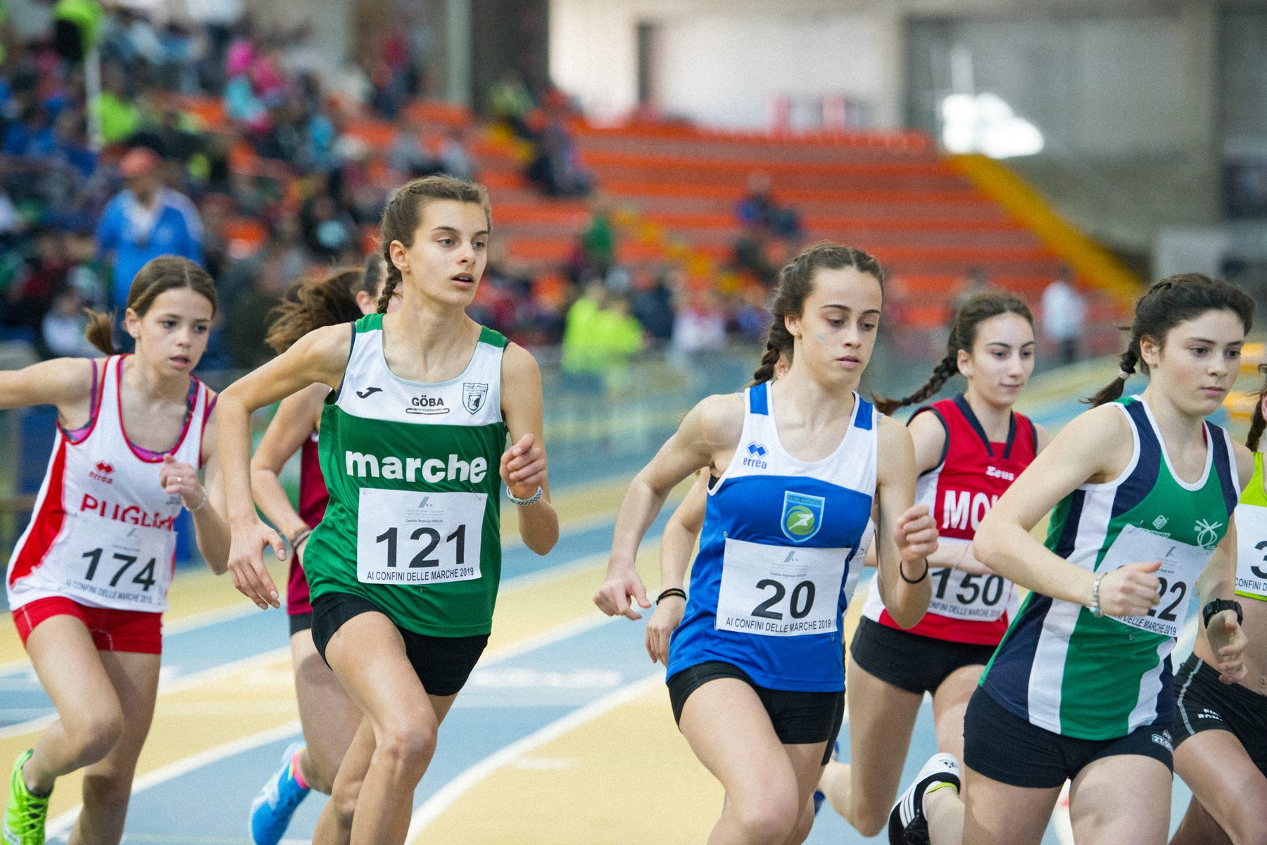 Cadette. 60: Caterina Camossi (Friuli-Venezia Giulia) 7”82; 7. Sabrina Salvatori (Asa Ascoli Piceno) 8”19; 200: Sara Cirillo (Lazio) 25”91; 6. Chiara Menotti (Pol. Montecassiano) 26”62; 600: Serena Frolli (Atl. Osimo) 1’39”86 pb; 60hs: Giulia Fanzella (Friuli-Venezia Giulia) 9”02; 6. Giorgia Messi (Sef Stamura Ancona) 9”63 pb; 3000 marcia: Verdiana Casciotti (Lazio) 16’15”87; 3. Lucia Lamura (Sef Stamura Ancona) 16’53”74 pb; alto: Gaia Pianigiani (Toscana) 1.67; 6. Federica Tomassini (Atl. Avis Macerata) 1.50; asta: Camilla Antonipieri (Lazio) 3.30; 4. Claudia Boccaccini (Atl. Sangiorgese R. Rocchetti) 2.60; lungo: Matilde Guarino (Toscana) 5.48; 3. Eleonora Fazi (Sport Atl. Fermo) 5.21 pb; triplo: Claudia Tessitore (Lazio) 11.74; 2. Francesca Cuccù (Atl. Sangiorgese R. Rocchetti) 11.71 pb; peso: Anna Musci (Puglia) 13.72; 3. Sofia Coppari (Atl. Fabriano) 10.85; tetrathlon: Giulia Ginulfi (Lazio) 2932; 3. Ambra Compagnucci (Atl. Avis Macerata) 2566 pb; 60 extra: Meskerem Paparello (Atl. Ama Civitanova) 8”41; Beatrice Polenta (Sef Stamura Ancona) 8”53; 4x200: Lazio (Aurora Brugnoli, Sara Meconi, Sofia Valoppi, Sara Cirillo) 1’45”67; 3. Marche (Sabrina Salvatori, Meskerem Paparello, Beatrice Polenta, Chiara Menotti) 1’47”87.