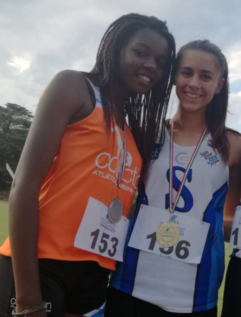 Cadette. 80: Irene Pagliarini (Collection Atl. Sambenedettese); 300: Chiara Menotti (Pol. Montecassiano); 1000: Eva Luna Falcioni (Atl. Avis Fano-Pesaro); 2000: Veronica Faggioli (Atl. Ama Civitanova); 1200 siepi: Serena Frolli (Atl. Osimo); 80hs: Martina Cuccù (Atl. Sangiorgese R. Rocchetti); 300hs: Anthea Pagnanelli (Collection Atl. Sambenedettese); alto: Chiara Raccosta (Atl. Civitanova); asta: Agnese Capponi (Asa Ascoli Piceno); lungo: Eleonora Fazi (Sport Atl. Fermo); triplo: Francesca Cuccù (Atl. Sangiorgese R. Rocchetti); peso: Giorgia Di Salvatore (Collection Atl. Sambenedettese); disco: Eva Joao Polo (Collection Atl. Sambenedettese); martello: Vesna Braconi (Atl. Fabriano); giavellotto: Benedetta Saracchini (Atl. Osimo); marcia 3000: Francesca Cinella (Atl. Civitanova); pentathlon: Claudia Boccaccini (Atl. Sangiorgese R. Rocchetti); 4x100: Irene Pagliarini (Collection Atl. Sambenedettese), Martina Cuccù (Atl. Sangiorgese R. Rocchetti), Sofia Stollavagli (Atl. Avis Macerata), Sabrina Salvatori (Asa Ascoli Piceno).