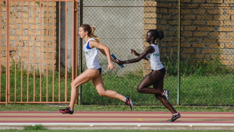 4x100 allieve, il secondo cambio tra Sokhona Kebe e Annalisa Torquati