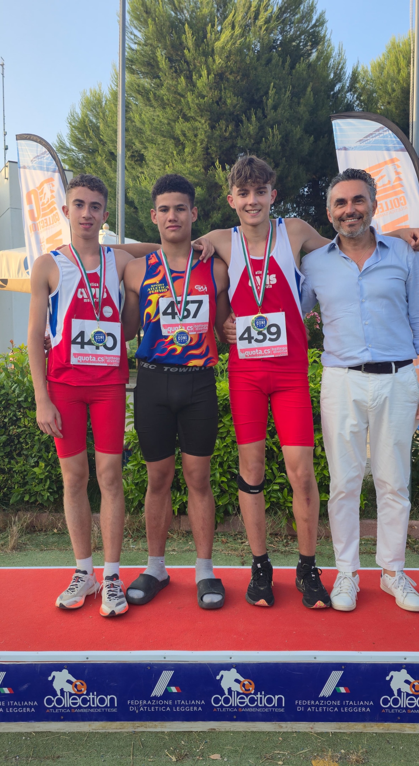 15 Giugno 2025Arrivano i verdetti per la fase regionale del Trofeo Coni, l’evento dedicato alla categoria ragazzi e ragazze (under 14) che vivrà la finale nazionale a Lignano Sabbiadoro, in Friuli, nel mese di settembre. In campo maschile, a San Benedetto del Tronto, successo di Michele Maccari (Atl. Avis Macerata) con 2646 punti nel tetrathlon A che comprende alto, 60, peso e 600 metri. Nel tetrathlon B con lungo, vortex, 60 e marcia sui 1000 metri, primo posto di Filippo Rita (Atl. Avis Macerata) a quota 1913 mentre nel tetrathlon C, articolato nelle prove di 60 ostacoli, peso, lungo e 600 metri, si impone Martino Pedersoli (Sport Atl. Fermo) con 2914 punti e anche il notevole crono di 8”98 ottenuto tra le barriere. La manifestazione allestita dalla Collection Atletica Sambenedettese, abbinata alla seconda tappa dei Societari ragazze, vede anche il 9”35 nei 60 ostacoli di Bianca Cherubini (Atl. Chiaravalle).